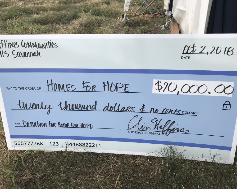 We joined other members of the home building industry in our community Savannah for the dedication ceremony of a Home for Hope built in the community by our builder Grand Homes, and for the presentation of a $20,000 donation to Homes for Hope made by Huffines Communities.
