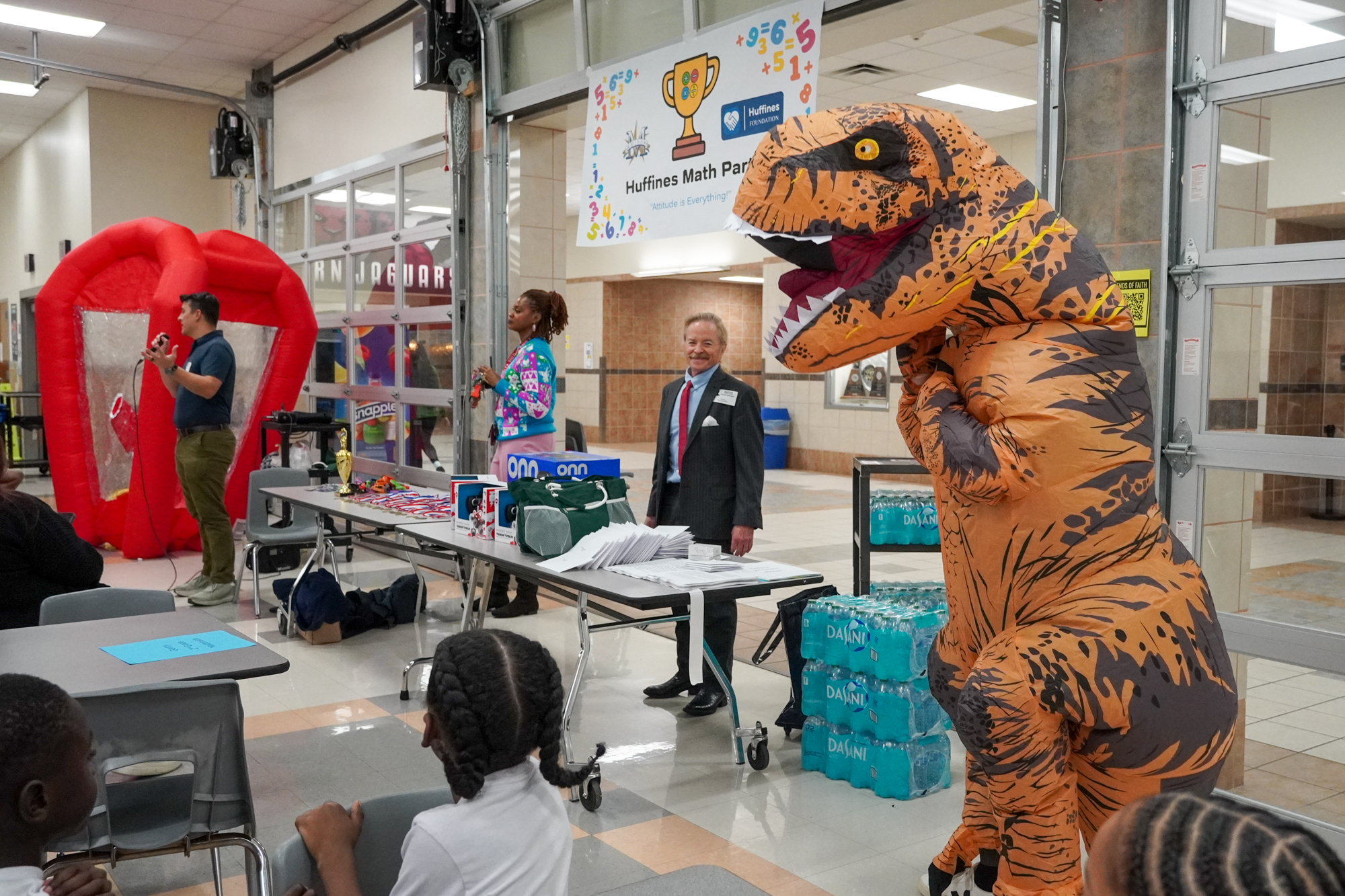 The event featured music, raffles, and a surprise visit from the Math Dino. But perhaps the most memorable moment came with the cash machine experience, where students literally grabbed their earnings. (View photos from the event here)